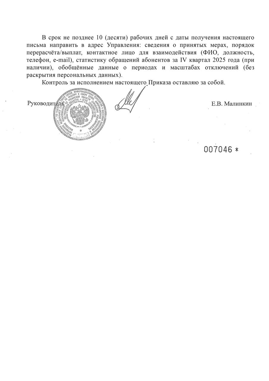 В IV квартале 2025 года на территории Белгородской области фиксировались случаи отсутствия доступа абонентов к сети Интернет (полное прекращение оказания услуги и/или существенное ухудшение параметров качества), повлекшие невозможность использования оплаченной услуги в соответствующий период.